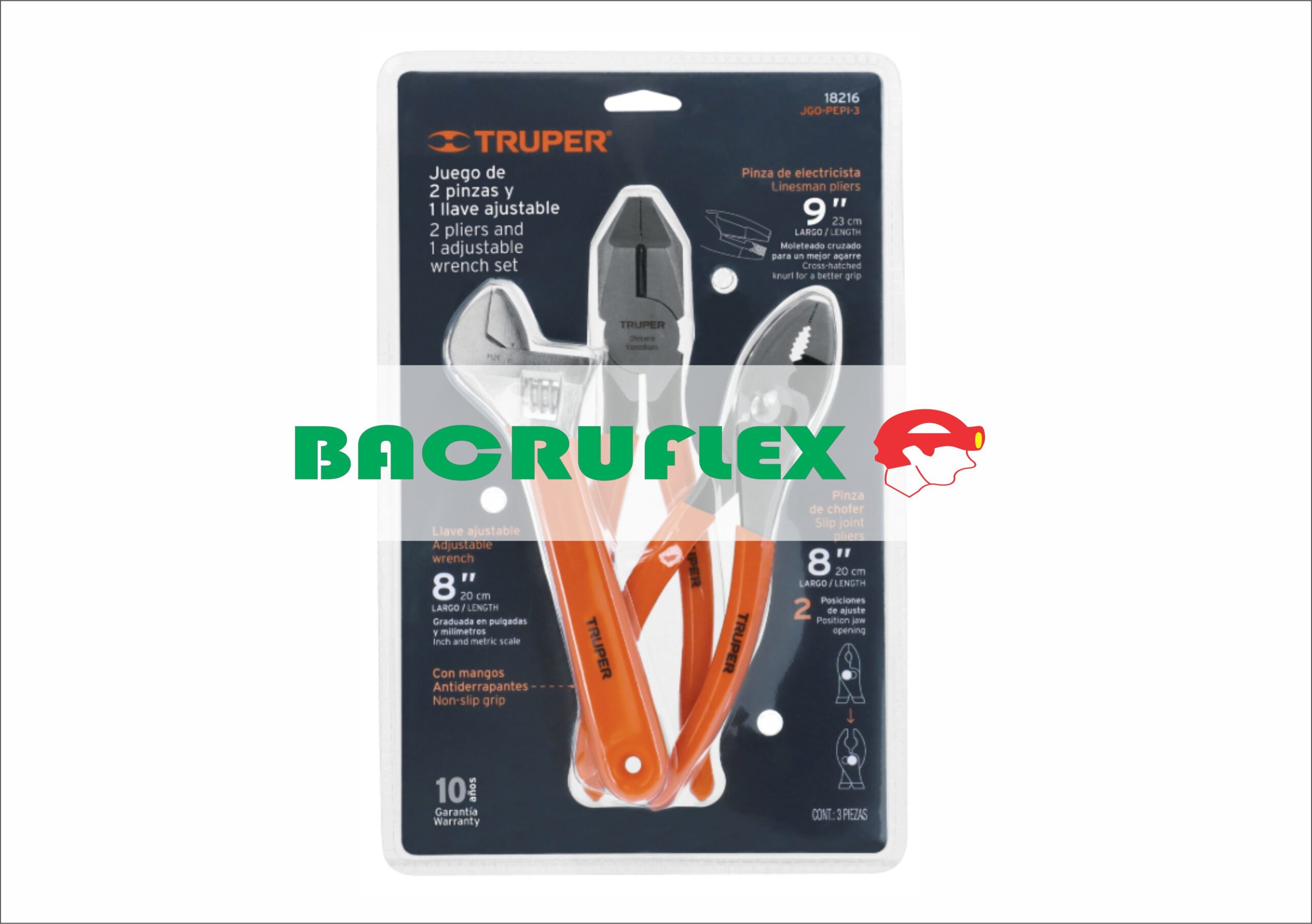 JUEGO CON 2 PINZAS Y 1 LLAVE AJUSTABLE MANGO DE PVC 18216 TRUPER